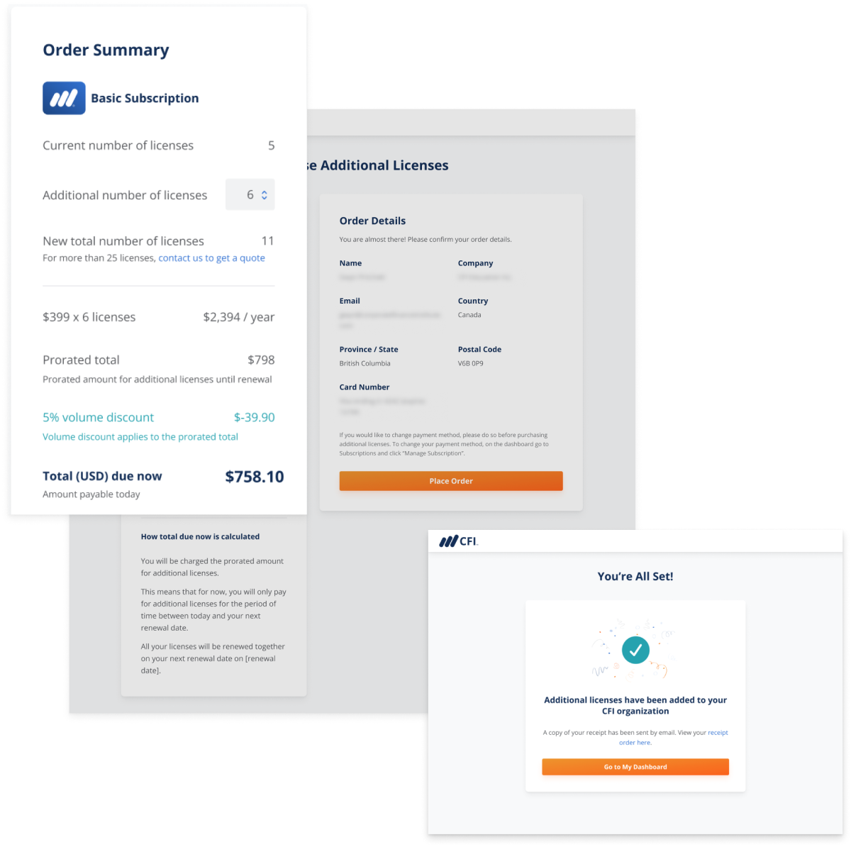 A big improvement is here for companies with Self-Serve subscriptions at CFI, making it much simpler for them to purchase additional learning licenses independently. To purchase additional licenses as a Self-Serve customer to go Settings on the left side menu and click Purchase Additional Licenses.